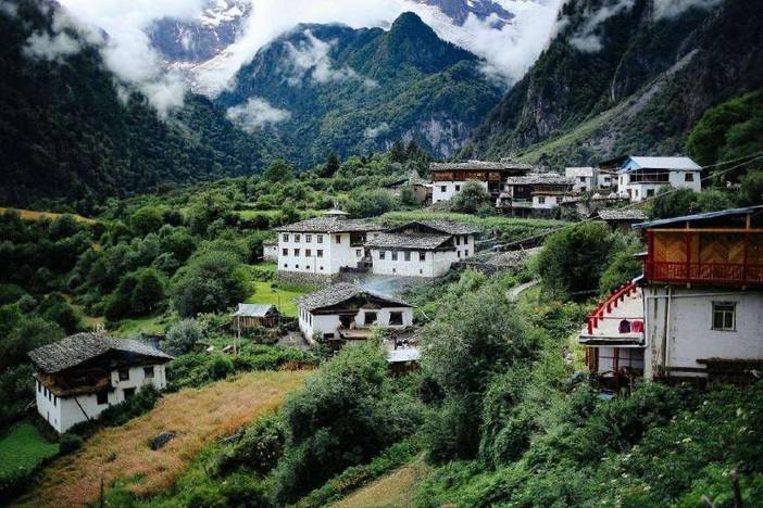这是一个非常小的古村落,分为上雨崩和下雨崩,但加起来也就几十户人家。村落四面环山,海拔高达3000米,只有一条驿道与外界相通。因此有人说这里是陶渊明笔下真正的“世外桃源”。