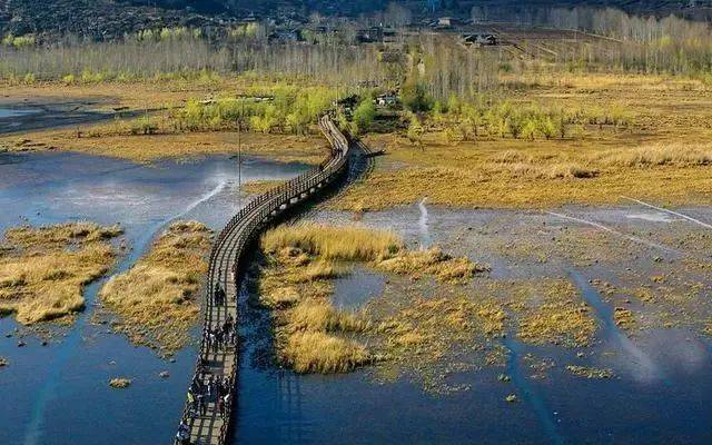 不似红海滩般的浓烈,她有的是秋天最原始的色调,却别有一番雅致和滋味,远眺湖面,其实很静谧,像一副山水画卷。