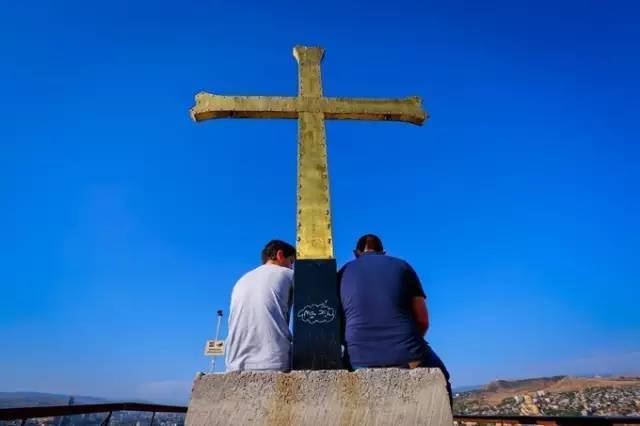 第比利斯老城Metekhi桥头开始步行上山,也可在老城河对岸坐缆车,单程1GEL,往返2GEL。行至最高处,有一个巨大的十字架,远眺可以看见“格鲁吉亚母亲”塑像和和平桥,继续前行下山便可返回自由广场,第比利斯具有特色的硫磺浴场也在附近。