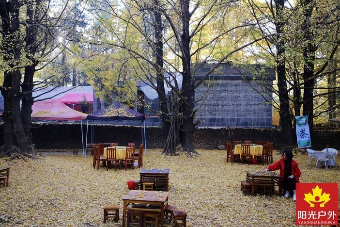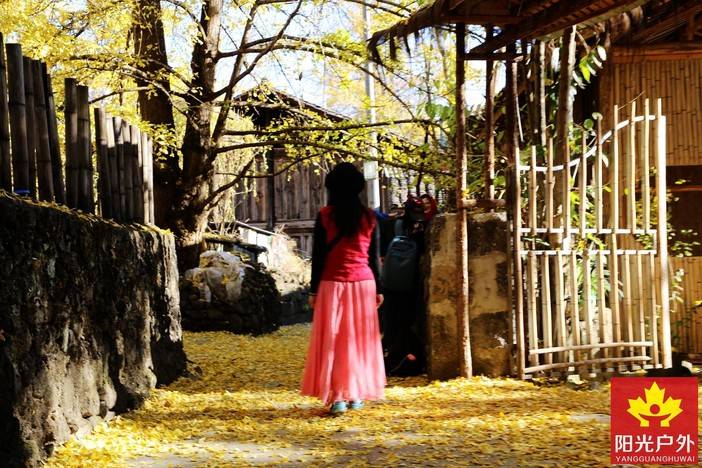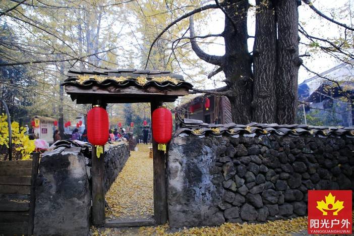 古老的银杏村,家家户户房前屋后随处可见枝繁叶茂几百年树龄的银杏树,偶尔有些幼小的树苗,每到深秋这里就变成一个金色的童话世界,村子里随处可见布满青苔的石墙,道路,小院……红红的灯笼点缀在院门上,让小院顿现生机,白果沉甸甸挂满枝头。