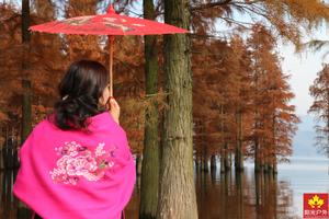 初冬季节,衫叶已红,倒映水中格外美丽。四明湖水中红杉林秋景斑斓,十分耀眼,当你抵达湖畔,看到眼前这么一大片、一大片红绿相间的水杉林挺立在水面,惊呆了。。。当中点缀着部分还没有红的绿叶子,当真是色彩绚丽多姿!