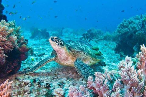 早餐后,出发前往APO岛对面码头,到APO岛需要1个小时左右,我们可以在海底浮潜,观赏缤纷的珊瑚和鱼类,与海龟一同畅游.APO岛生活着300多种的珊瑚及600多种的海洋动物,海水清澈,软珊瑚在那翩翩起舞,成群五颜六色的鱼儿簇拥成一团,居住着大量的小丑鱼和野生海龟.我们会在岛上安全员的带领下去寻找大海龟,小丑鱼,海葵等等(需要自己带水底照相机,岛上有出租照相机大约在1000~1200P)。