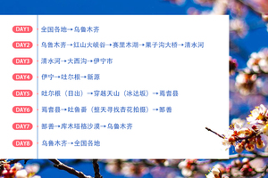 温馨提示:新疆的杏花,通常在4 月中上旬盛开,杏花花期较短,受气温以及天气变化影响较大,每年花期不固定,无法确保最佳花期。不同地方花开时间不同,敬请谅解!也可能因为天气原因会涉及行程的微调,届时请配合导游工作。