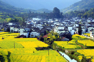 庆源被称作深山小桃源,简称小源,位于婺源县东北部的段莘乡,建村于唐开元年间。这里峡谷深幽,宽如太行之盘谷,美如武陵之桃源。一条宽约10米的小溪穿村而过,把庆源古村分为东、西两岸人家。作为一个有着千年历史的古村落,村内的建筑仍保持着明清时期的风格,在村子的千年历史中,涌现出不少鸿儒名流、巨商富贾,如明代翰林大学士詹养纯、武将詹天表,清进士詹轸光。每年到油菜花盛开时,村子好像是被花海淹没似的。