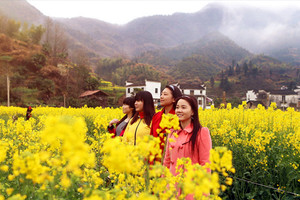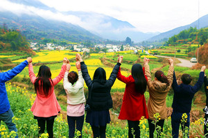 早起,早餐以后,我们从庆源驱车前往婺源最壮观的江岭油菜花梯田。沿途会路过并观赏高山平湖,风景秀丽。江岭或许是婺源最值得去的地方,因为那里漫山遍野的油菜花是呈梯田状,从山顶铺散到山谷下。站在山顶望去,脚下大片的山谷内,油菜花层层叠叠,一望无际,中间围拢着几个小小的村落,黑瓦白墙的徽派民居夹杂在一片金黄之间,唯美意境。欣赏月亮湾美景,当竹筏荡漾于水面,意境就出现了。适时准备在回程路上或服务区饱餐一顿。约19点到达萧山。大家互相道别,含泪吻别!相约下次再出发!