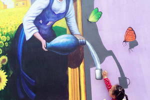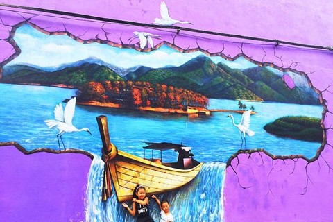 除了每座房子都给涂上了靓丽的色彩之外,罗源村的另一大亮点是房子外墙或地面、或古树上随处可见的逼真、奇妙的3D立体画。两小姑娘在不断发现中不停的得到惊喜,玩得不亦乐乎,妈妈们也觉得这样的3D馆比之室内的更有意思。