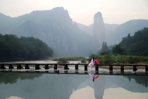 清晨早起前往拍摄晨雾中的仙都【鼎湖峰】,这里如诗如画的风光都是仙都的精华。待人文风光拍摄完后我们转换成环境人像模式,我们的驴友美女将第二次闪亮登场,身着长裙,手撑纸伞,置身于美景之中,那是何等的诗情画意。