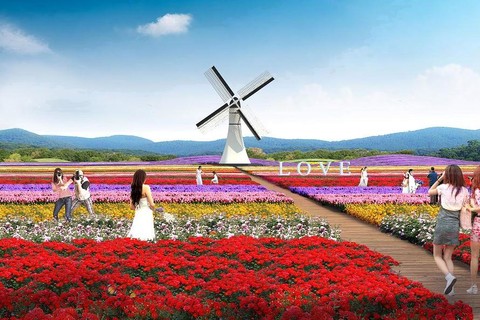 玫瑰毋庸置疑是爱情的象征,花丛中的love雕像是园区的精神建筑。与爱人携手,漫步过长长木栈道,伫立于love雕塑之前,爱情的仪式感油然而生。