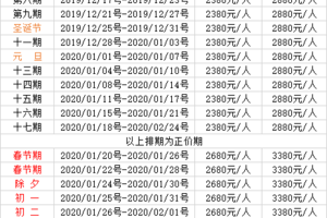 成 人:2880元 1月20日-1月30日之间为春节旺季上涨500元 | ||