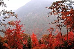每到深秋万物萧索之际,文成的山岭就被红枫点缀得生机盎然。古道与红枫相映、霜叶与秋絮翻飞,沧桑中透着几点浪漫,热烈中带着些许寂寞,游客纷至沓来,只为淋一场枫叶雨,感怀那“红于二月花”的意境。