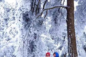 10:00我们盘山公路到达海拔800多米的临安龙岗山村,开始登山,一路欢声笑语,路途有水源,一路经过松树林,很可能有雾凇,很美,最适合拍照哦。穿越白雪皑皑的雪原小道,一路向上攀登,与中午时分,到达海拔1448m的云顶湖。