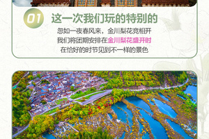 然后我们前往素有“中国雪梨之乡”美誉的金川。我们的团期是金川最好的时节,万物复苏的初春三月,正值金川成千上万棵梨树花期,雪白色的梨花竞相开放,一片片、一层层的铺散开来,漫山遍野的白色花海中夹杂零星新绿,空气中氤氲着梨花清香,眼是天堂,身亦是天堂。登上金川著名景点——神仙包,将这铺满整个世界的纯白花海和缭绕其间的青雾尽收眼底。“忽如一夜春风来,千树万树梨花开”,梨花沾雨,是花的仙境还是梦中春雪?