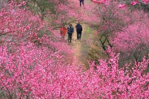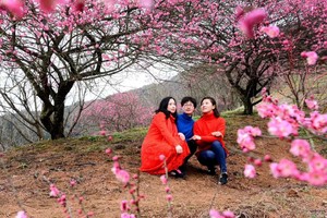9:30 车行2小时左右到达新建村梅花谷,徒步进入赏梅,这个开满梅花的山坡是什么神仙地方,太美了吧!!!新建梅花山的梅花贵在漫山遍野,层林尽染。梅林近千株梅花竞相开放,染红了一座座山头,格外绚烂。赏梅、拍写真、和朋友坐在梅花树下聊聊天,一定是美好的一天。