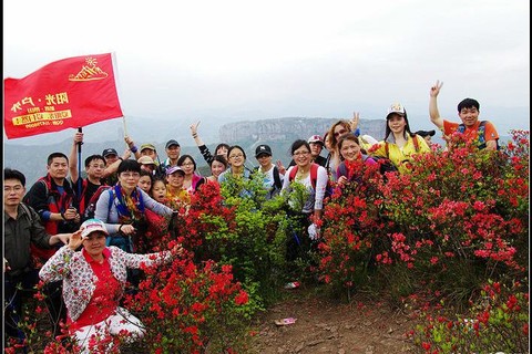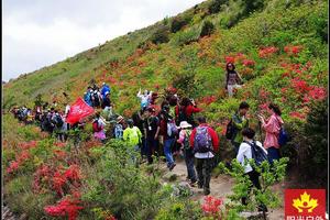 早6:30从萧山剧院广场出发,领队给大家做交流游戏,一路欢声笑语。到达徒步起点,我们下车整队,出发。一路前行,上堡山周围都开满了各色花儿,映山红连绵不绝,染红了整个山坡。