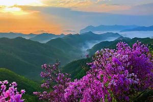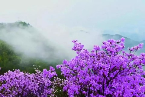 不过,雨后就是一份惊喜。大雨停歇后,山谷里升起了云雾,映山红被一层薄雾包裹,慢慢地,云雾散开了一些,远处的山头隐约露出来,此时的映山红沾染了一身仙气,在云雾中更好看了。