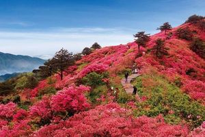 高山云雾之中,漫山遍野的杜鹃花华丽绽放,带着清纯之气迎面扑来。在漫花丛中,你还能发现少许紫色的花朵簇拥成团,显得格外亮丽,这是最为名贵的华顶杜鹃。