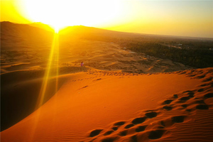 活动:今日出发前往游览塔里木胡杨林公园,这里集中了塔里木河流域最大面积的胡杨原始森林,胡杨高大粗壮的身躯,或弯曲倒伏、或仰天长啸、或静默无语、或豪气万丈,置身其中,除了赞叹,还有对生命无限的敬仰......如果天气晴好,还可以欣赏绝美的沙漠落日。适时离开景区前往塔克拉玛干大沙漠中的石油小镇-塔中入住。