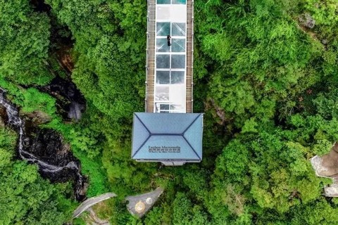 【5D玻璃桥20元已含】玻璃桥全长26米,桥宽6米,高度160米。玻璃桥采用5D魔幻艺术工艺,运用视差营造立体的景观效果,原本设计为普通全景效果的玻璃桥现如今已提档升级至5D玻璃桥。游客走在桥上,不仅可以远望水下孔景区四周繁茂的森林、俯瞰壮丽的瀑布、欣赏美丽的山水风光,还可以看到脚下玻璃的“碎裂”, 绝对的惊险刺激。游客们可以从听觉、视觉、触觉、动感等多方面感受这座5D玻璃桥带来的乐趣。