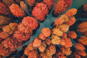 当你抵达湖畔,看到眼前这么一大片、一大片红绿相间的水杉林挺立在水面,惊呆了。。。当中点缀着部分还没有红的绿叶子,当真是色彩绚丽多姿!