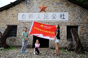 集合签到出发,见阳光户外红色旗子