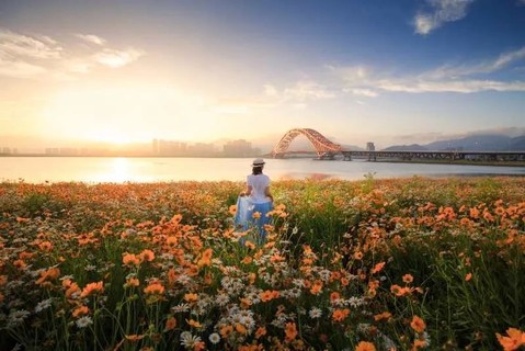 宁波北仑区,梅山红桥百亩花海