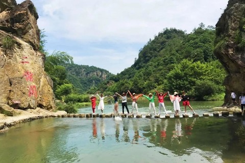 从黄金和道出发,一路在山间小路行走,全程可以欣赏到乐毅湖,三和滩,二谢涧,金口初月,石刻等等景点,秀美的山峰和幽深的峡谷,清澈的水流,清凉整个身体!