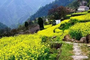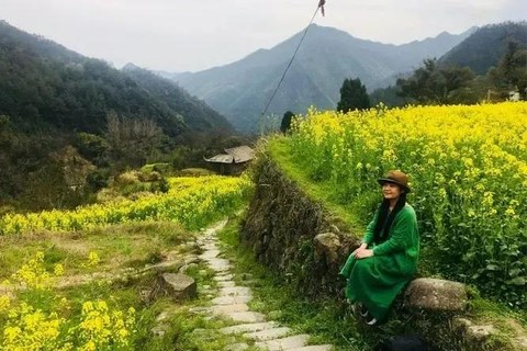 大约2小时我们抵达建德胥岭脚村,下车热身。然后从胥岭脚千年古官道开始徒步,进军胥岭村。进入最美徒步段,沿古道而上,两旁是层层叠叠的梯田,从山脚到山腰有500余层。田里铺满金黄的油菜花,满山坡从山顶滑落下来,曲折着沿山坳伸展开来。梯田从上到下独特的立体感,也为赏花提供了多种视角,远近、高低各有不同。