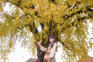 高达27m的银杏树,要三四个人才能抱住树干。在树下仰望,一眼都不到树顶,目光所及全是金黄一片。