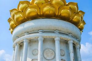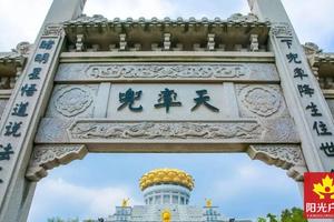 第七层就是观景平台,天宫的门口有十二生肖护法。大家注意看图片里的人群,一对比可见天宫的雄伟庄严,我们看到的这座巨型金莲台,莲瓣现在世界第一。