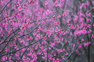 它比普通樱花开花早、花期长,但是每朵樱花从开放到凋谢 只有7天,整株树的花期约15天左右。平时我们看见的大多是粉色樱花,这样的红色樱花也别有风情哦!