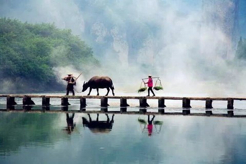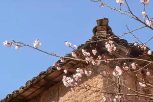 途经小桥流水,深入炊烟人家,山间的杏林层层叠叠;村中的杏树,错落有致,多少人翘首以盼,垫脚等待,村舍才一点一点被杏粉墨韵点染。