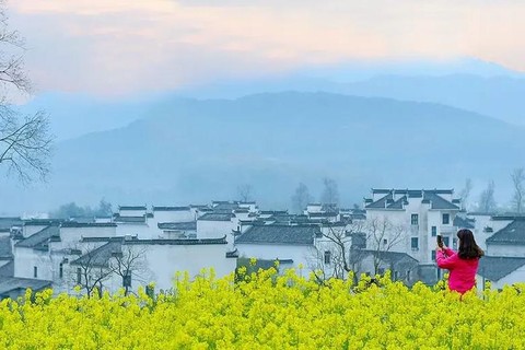 今天我们要重点领略中国zui美符号——梯云村落篁岭赏花,途径唯美的【月亮湾】,正值早晨,水面薄雾飘渺,沙洲如宁静在春水里的一弯新月,加上渔舟的点缀,更有一番江南柔美的风味,可以好好欣赏一番!