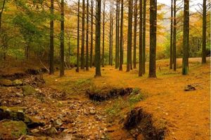 从十字裤,经冬青湾、鹁鸪岩水帘洞、6944基地,至仰天湖,古道沿路金钱松林遍布,灿若黄金铺路,可谓宁波的第三条黄金古道。