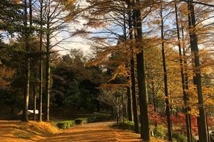 金钱松下,曲径通幽,小路婉转,金钱松叶铺路,灿若金色地毯,漫步林间小径,置身童话世界,无限浪漫。