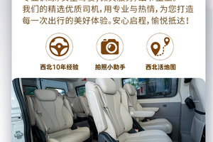 交通:旅游用车费用,根据人数安排合理车型,1-3人安排5座城市SU或B级轿车,4-5人安排7座商务车,6-8人安排9座商务车;