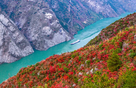 生动地展示三峡红叶的壮观