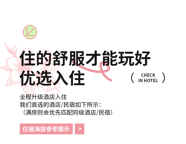 (6)对于住宿有特殊要求的队员,请在报名时告知客服(要求全程一个人住宿,大床房,三人间等等),在报名时确定费用,上团后临时修改住宿,可能无法满足其要求;